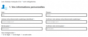 Pour vous inscrire sur Éduthèque, il vous suffit de disposer d’une adresse @mlfmonde.org. Si vous n’en disposez pas, demandez-la nous ! Vous pourrez ainsi renseigner le champ « Adresse mél professionnelle académique (identifiant)* : » Vous avez le choix du mot de passe.