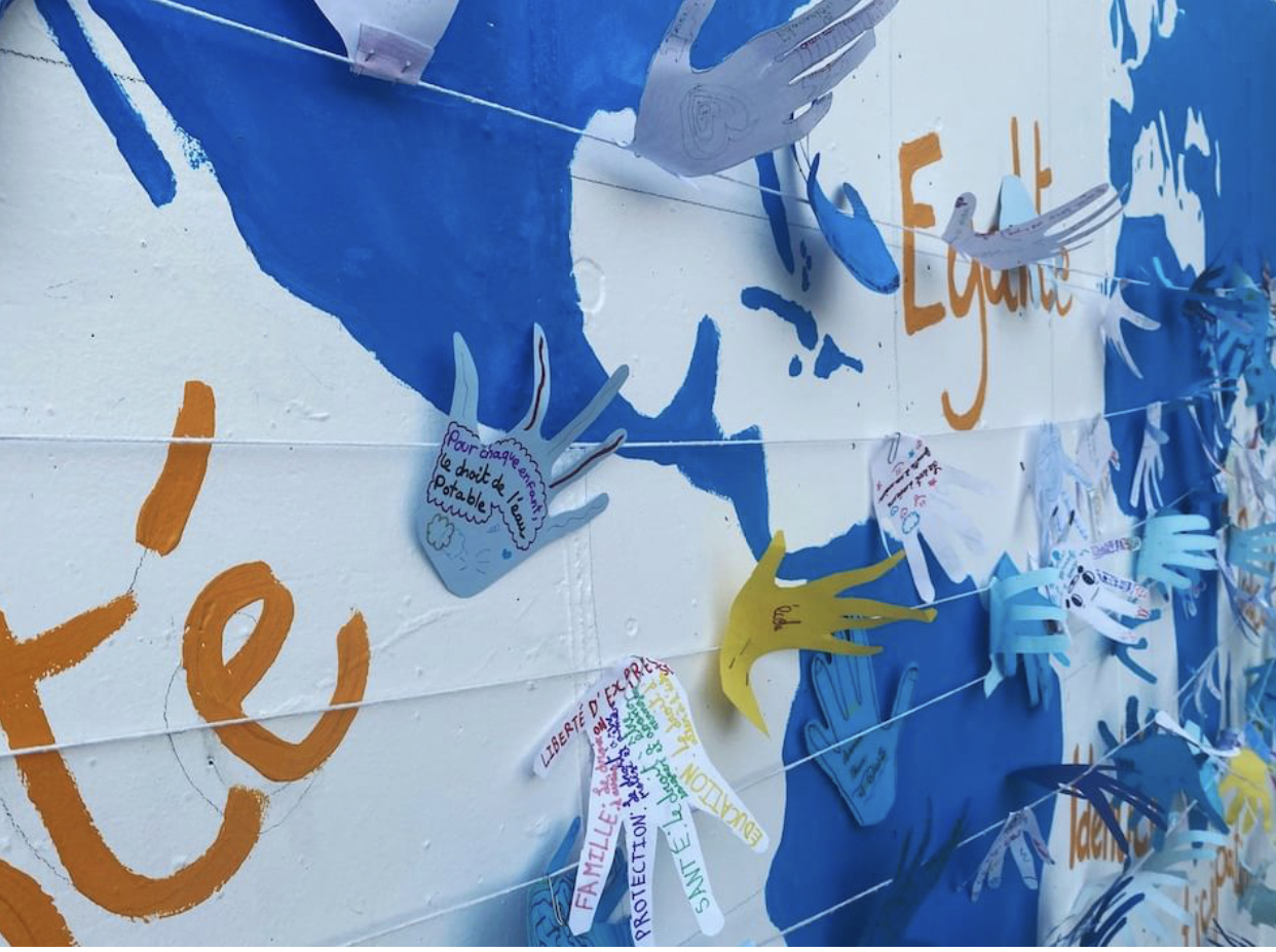 Les élèves du Lycée français Molière, Espagne, ont suivi un atelier de peinture et de dessin mis en place en collaboration avec l’Unicef de Aragón. Un mur artistique couvert des messages a été réalisé avec pour thème le droit des enfants.