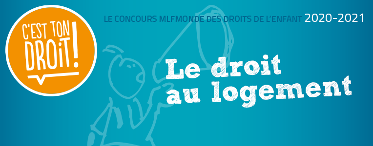 Le concours C’est ton droit ! est ouvert aux classes des cycles 3, 4 et lycée des établissements du réseau de la Mission laïque française. Il est aussi ouvert aux établissements des académies partenaires (Caen, Paris, Reims, Dijon et Poitiers). Il engage les équipes et les élèves dans une réflexion sur les droits de l’enfant. Cette année, l’objectif est de réaliser une vidéo de 3 minutes sur le droit au logement, article 27 de la Convention internationale relative aux droits de l’enfant.