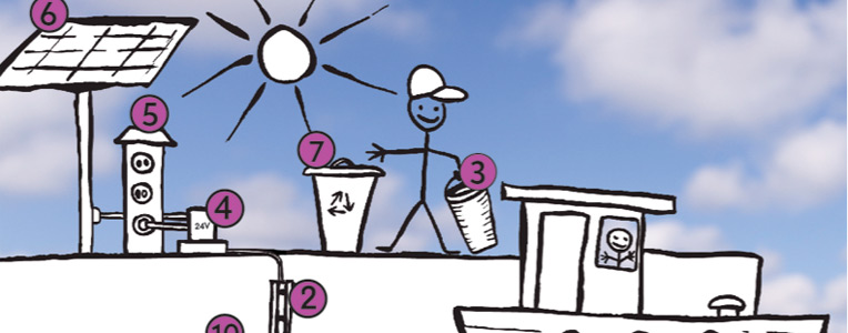 - la création d’une poubelle marine, utile au nettoyage des résidus plastiques et chimiques des eaux des ports de plaisance ;