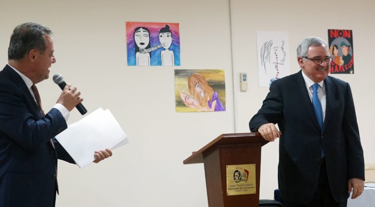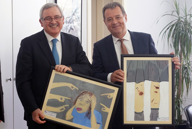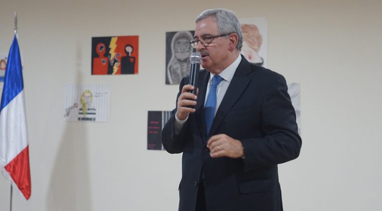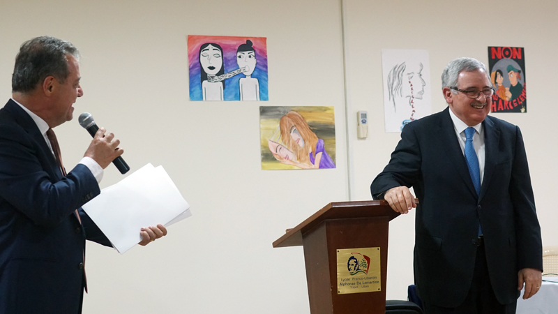 Accueilli par une assemblée d’élèves sensibilisés à un sujet délicat, le ministre a d’abord assisté à la projection du court-métrage réalisé par les deux classes engagées dans le concours et qui soulève, entre autre, la question du mariage précoce des jeunes filles. Il a ensuite découvert le plaidoyer rédigé par les élèves de 2nde en faveur des droits et du respect des femmes. Et, devant un auditoire attentif et concerné par ce sujet d’actualité au Liban, M.Oghassabian a pris la parole, rappelant la genèse de la création de ce ministère mais surtout en expliquant l’ambition affichée : « briser toutes les barrières qui empêchent les femmes d’atteindre leur but ». S’appuyant sur les affiches de la précédente campagne réalisées par les élèves, le ministre a également souligné l’importance du dialogue initié avec les jeunes générations, saluant ainsi le travail accompli au sein du lycée.