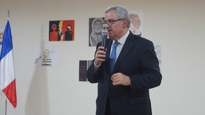 Toujours plus de prévention, et davantage d’engagement, ainsi pourrait-on résumer (trop succinctement) le travail mené au sein de l’établissement autour de la thématique de la protection des droits. Droits des élèves au « bien-vivre » à l’école, d’abord, avec la campagne #nonauHarcèlement initiée depuis novembre 2016 ; puis avec le travail réalisé par des élèves de 6e et 2nde à l’occasion du concourt Mlf C’est ton droit !, autour de la problématique de la scolarisation des enfants ; et enfin avec une intervention remarquée de M. Jean Oghassabian, en charge du ministère des Droits de la femme, nouvellement créé au Liban.