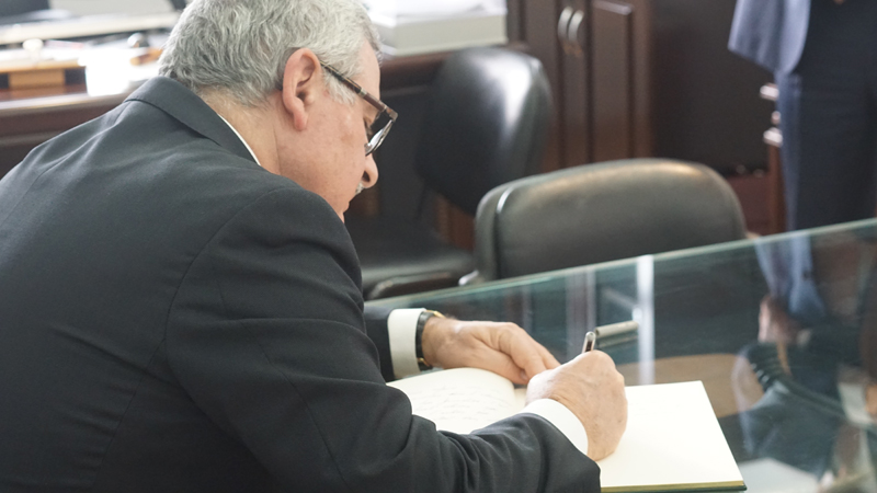 Pour conclure ce temps fort dans la vie de l’établissement, le ministre s’est vu offrir par M.Sauzet, proviseur du lycée, accompagné de M. Parmentier, IEN de zone représentant le poste diplomatique, deux affiches de la campagne, ciblées sur les femmes. Un dernier mot sur le livre d’or, et M.Oghassabian s’en est allé rejoindre son ministère qui, a-t-il avoué, est désormais fort sollicité…