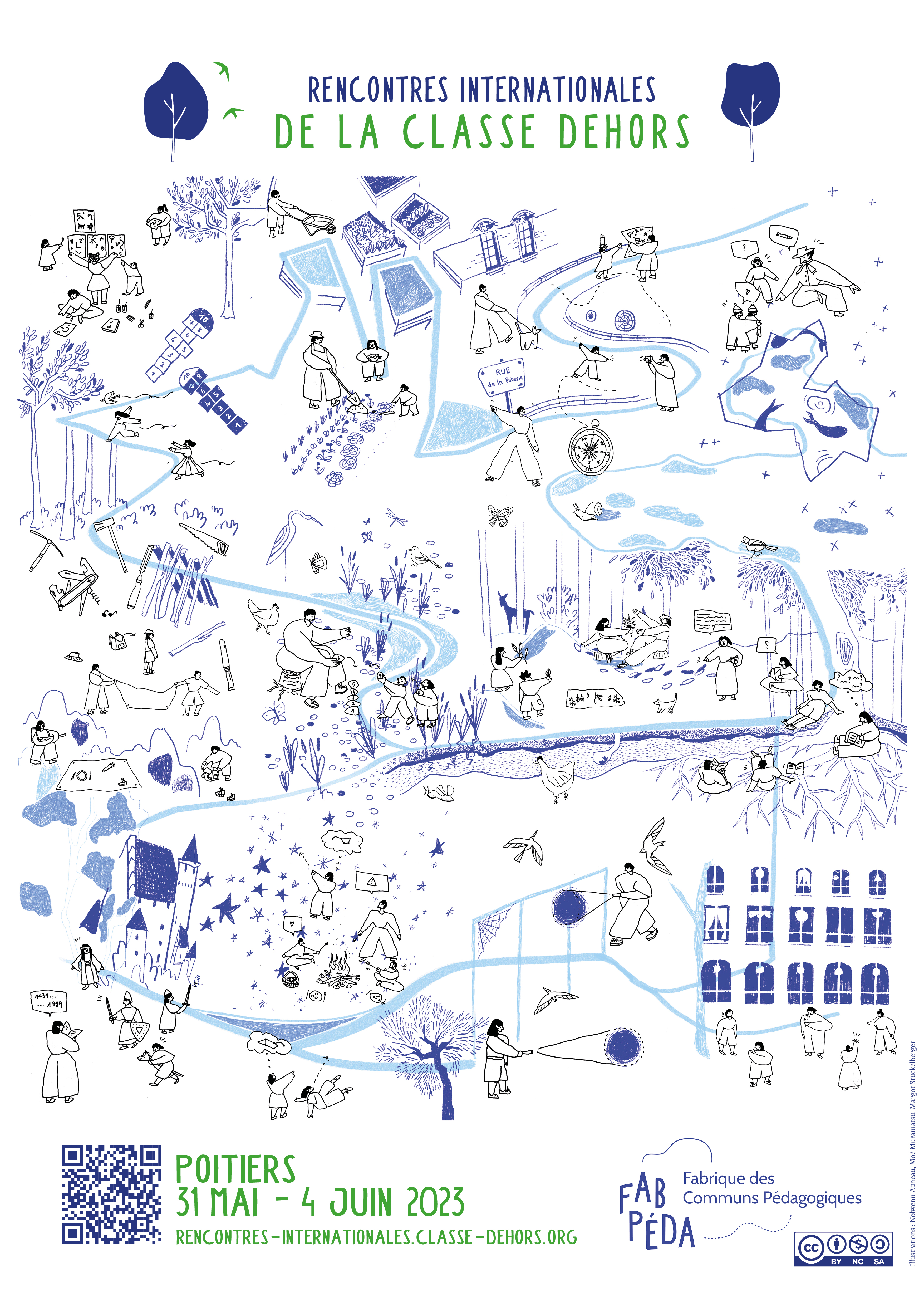 Initiées par la Fabrique des Communs Pédagogiques, portées par une coalition de plus de 100 organisations du monde de l’enseignement, de l’éducation populaire, de l’écologie et de la protection du vivant et organisées sous le patronage du Ministre de l’Éducation nationale et de la Jeunesse, les Rencontres internationales de la Classe Dehors se tiendront du 31 mai au 4 juin 2023 à Poitiers.