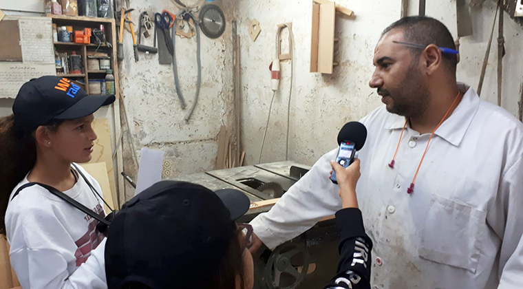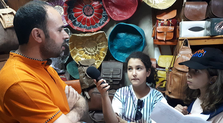 Les élèves ont pour mission de réaliser deux émissions au terme des 2 jours de travail ; pour recueillir le matériau nécessaire (sons, interviews…), deux groupes d’élèves ont été constitués : l’un s’est rendu au musée Mohamed VI d’art moderne et contemporain et l’autre, à la médina de Rabat, à la rencontre d’artisans.