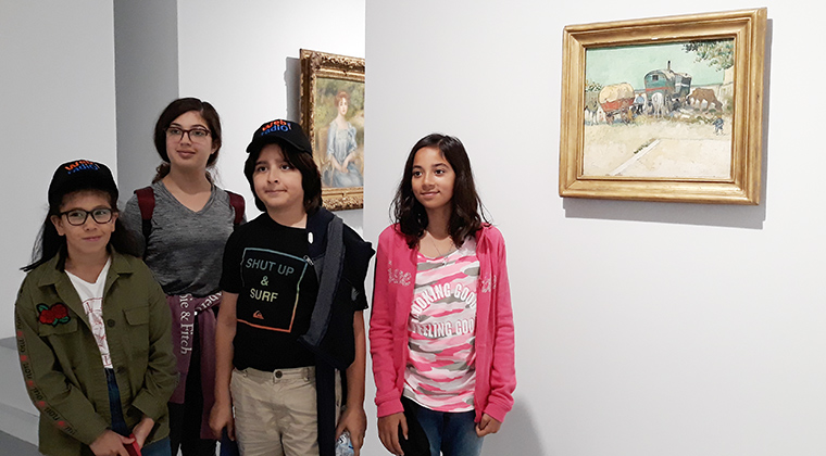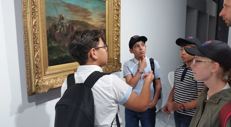 On n’a pas le droit à l’erreur, c’est plus stressant. J’ai bien aimé faire le montage de Tableauscopie avec le logiciel Audacity. J’ai aussi analysé une œuvre de Stevens au Musée. J’ai remarqué que mes camarades de Bouskoura avaient beaucoup de vocabulaire et de culture générale. (Camélia)