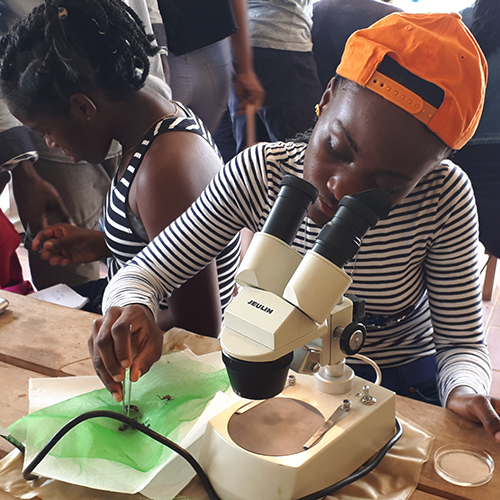 En mars : débat « Savanturiers show » et détermination de l’organisme à étudier sur le terrain grâce aux conseils et à l’expertise de M. Ntie. Le choix s’est porté sur les insectes.