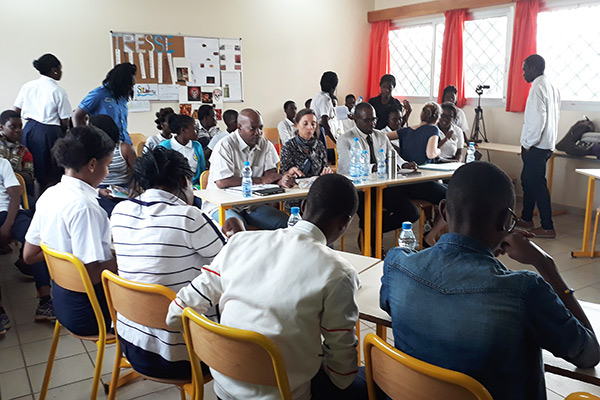 Tout au long de l’année 2018-2019, les élèves de 3e A du lycée Henri Sylvoz de Moanda ont participé à un projet scientifique, les Savanturiers du climat, organisé par le Centre de Recherches Interdisciplinaires de Paris (C.R.I.). Cette expérience s’est déroulée en partenariat avec Stephan Ntie, enseignant-chercheur, ses étudiants de l’USTM, Université des Sciences et des Techniques de Masuku de Franceville, et avec Martha NIGG, chercheuse au Centre International de Recherches Médicales de Franceville.