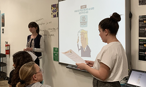 Des professionnels du journalisme sont venus à la rencontre des élèves : Pierrick Leurent et Valérie Defert (photo), correspondants de France 24 à Los Angeles ont notamment décrit les contraintes liées à la rapidité de l’information, en particulier pour les médias télévisuels et radio. Les élèves se sont ainsi improvisés journalistes et avaient, à cette occasion, préparé des questions pour réaliser une interview.
