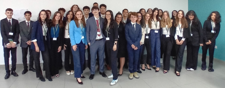 29 élèves et 3 enseignants accompagnateurs du LFI Bahreïn ont été accueillis au lycée Théodore Monod d’Abu Dhabi les 13 mai et 14 mai, pour le MUN-MO-2023 seule conférence Modèle des Nations Unies entièrement francophone du Moyen Orient.