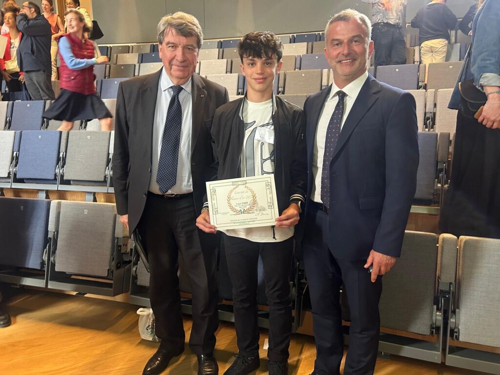 C’est à l’école militaire de Paris et en présence de Monsieur Xavier Darcos, président de l’Institut français, que Nouhad Jabre, élève de 4ème, s’est vu remettre le prix du prestigieux concours du « Plumier d’or » 2024, portant haut les couleurs du Lycée Montaigne (Liban) en France. Emotion et fierté étaient au rendez-vous quand s’est vu remettre cette distinction par Madame Moreau, marraine du concours.