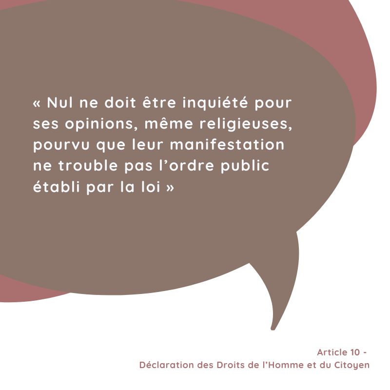 Ces valeurs de laïcité que nous qualifierons de « positives », ce sont les moralistes, les penseurs, les tribuns dont on a choisi a priori de valoriser les œuvres qui ont fini par les lui attacher. Ce sont des représentations. Pour nos amis Polonais par exemple, le français a été longtemps et reste la langue de la Fille ainée de l’Eglise et du culte marial. Il reste que la Déclaration des Droits de l’Homme et du Citoyen et notamment son article 10 ont bien été rédigés en langue française et non pas dans une autre langue. Cet article (« *Nul ne doit être inquiété pour ses opinions, même religieuses, pourvu que leur manifestation ne trouble pas l’ordre public établi par la loi ») dénoue le lien qui unissait le catholicisme et la société politique sous l’Ancien régime. Les lois de laïcité ont hérité de cette disposition fondamentale.