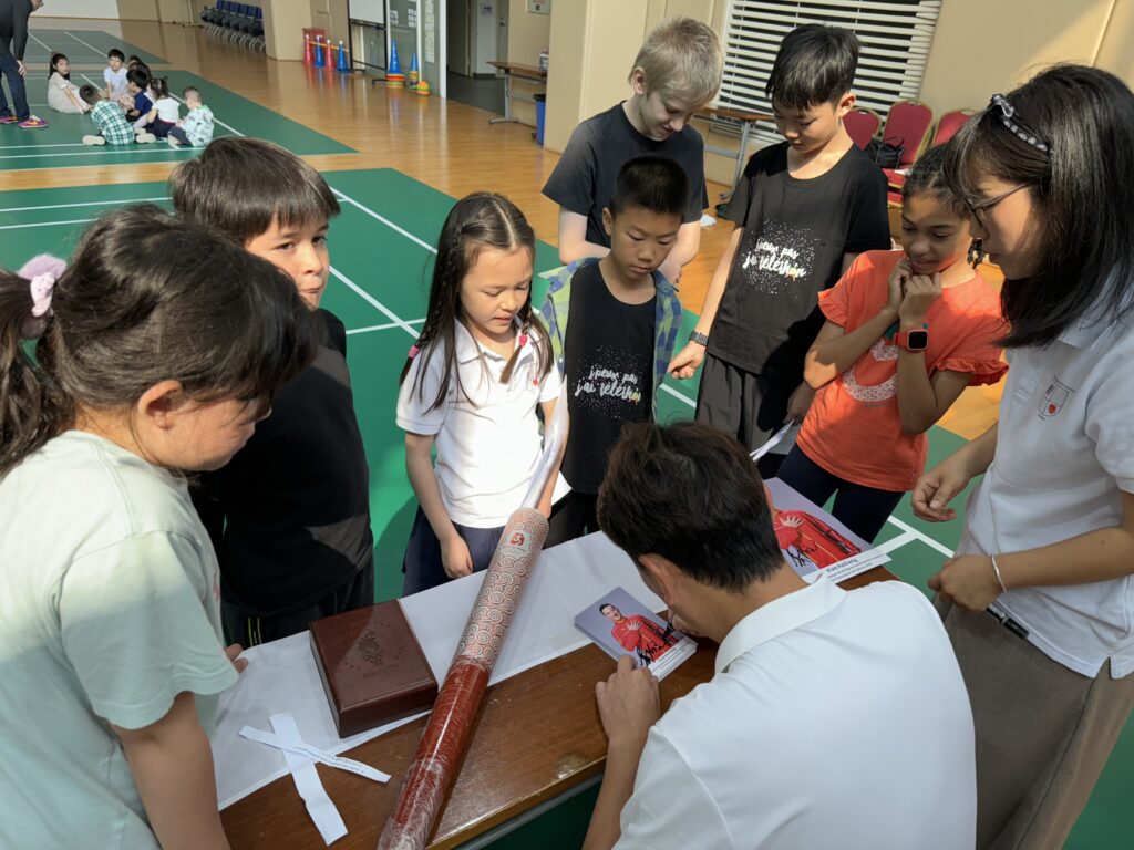 La présentation des deux médailles olympiques remportées par Xiao Hailiang, ainsi que de la torche qu’il a portée lors des Jeux Olympiques de Beijing en 2008, a été à la fois impressionnante et émouvante. Ces symboles de réussite et de détermination ont marqué les esprits des élèves et de leurs enseignants.